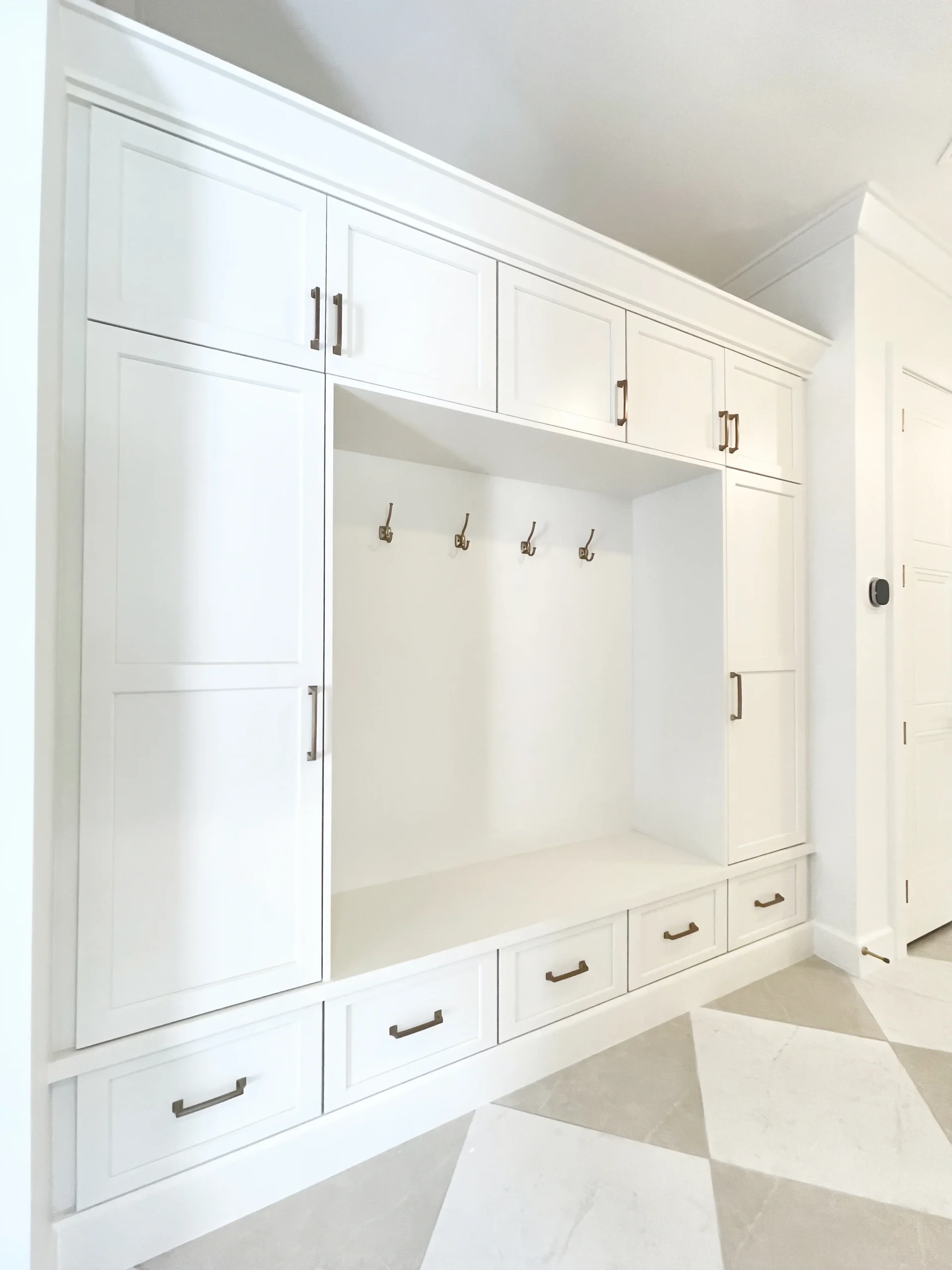 We take your lifestyle, aesthetic preferences, and storage needs into account to create a mudroom that truly feels like part of your home. Whether you need locker storage for your active children or a stylish wardrobe with hooks and shoe storage for your busy lifestyle, we’ve got you covered.