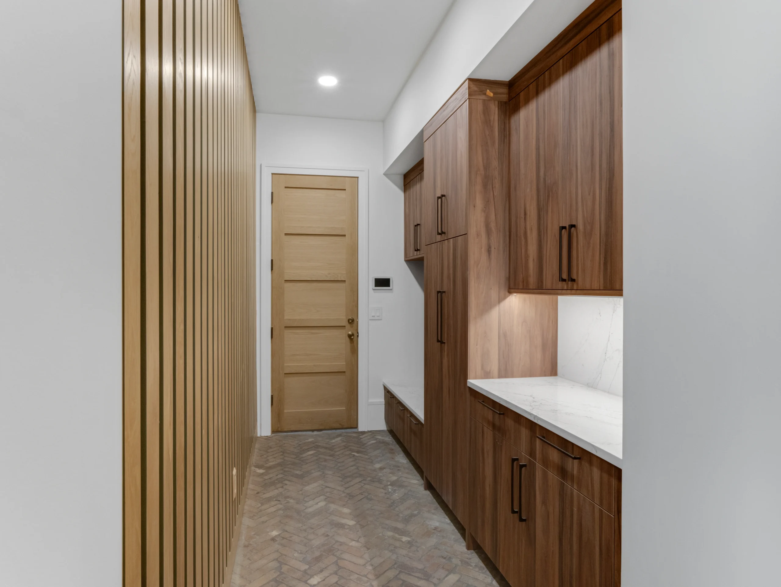 Custom mudrooms provide an organized space for your belongings, reducing clutter in your home1. Doors, drawers, shoe cubbies, hanging sections, adjustable shelves, and full-height pantries ensure that everything has a designated spot, making it easier to find items when you need them2.